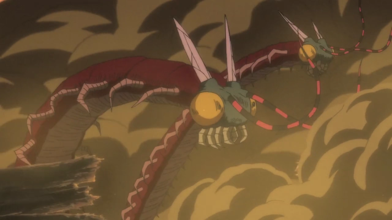 Stone Eater (石喰い, Ishikui) is a 100 years old large two-headed transformed centipede, who is able to turn people to stone and later eat them from inside.